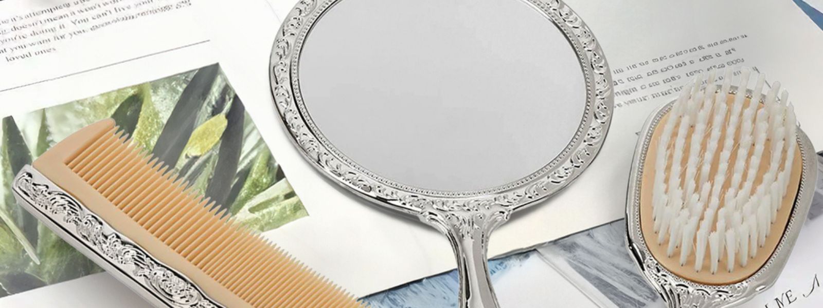 Ornate Vanity Set with Comb, Brush & Mirror