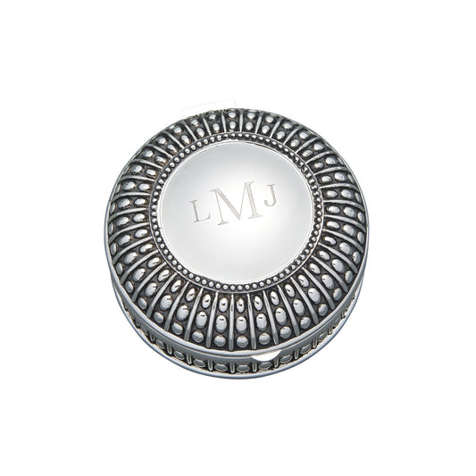 Silverplated Round Antique-Style Box with Beaded Detail, 3"