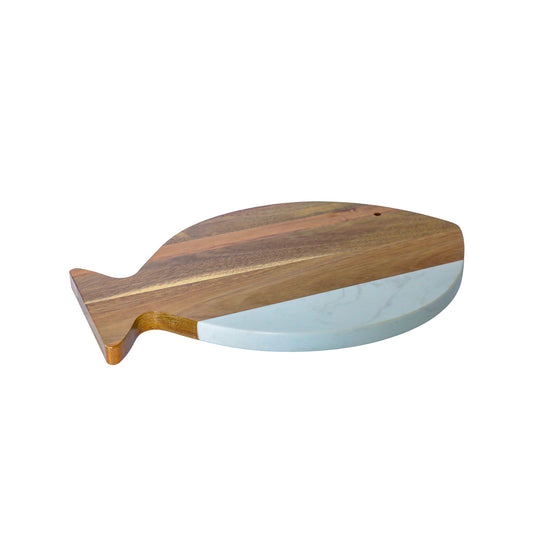 White Marble and Acacia Wood Rectangular Diagonal Board