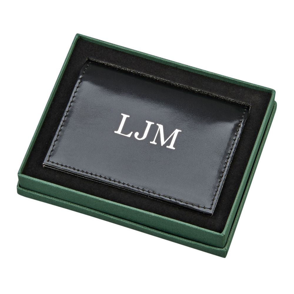 Looking to show a sense of style? Our black genuine leather expanding card case is perfect for you. Inside the case is a clear window for your ID, along with three slots for credit cards or other forms of ID. There is also space behind the slotted section for additional cards. The main section of the case has gusseted sides that can expand to hold even more! Pack those cards, ID's, money, or whatever you need into this expanding case. You will not believe how much it holds! Overall dimensions when closed are 4" x 3". Gift Boxed.