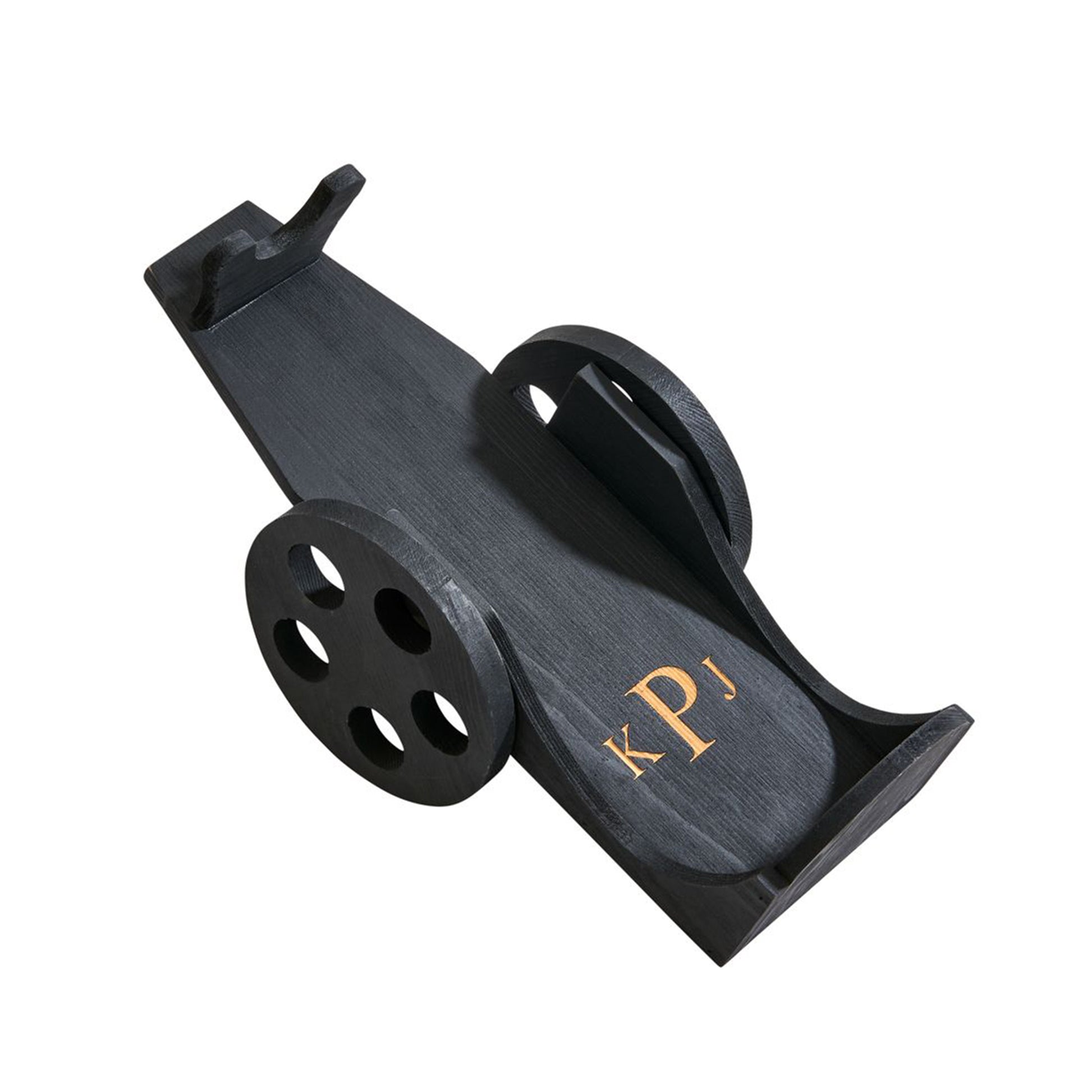 Our black wood classic two wheeled cart holds a single wine bottle and is sure to be a conversation starter when displayed in your kitchen or bar. This wine holder is a perfect decorative piece with or without a wine bottle and the wheels do really turn so you can move the cart across your table! Holds standard 750ml bottles and the overall dimensions are 12" x 5" x 6" Gift Boxed.