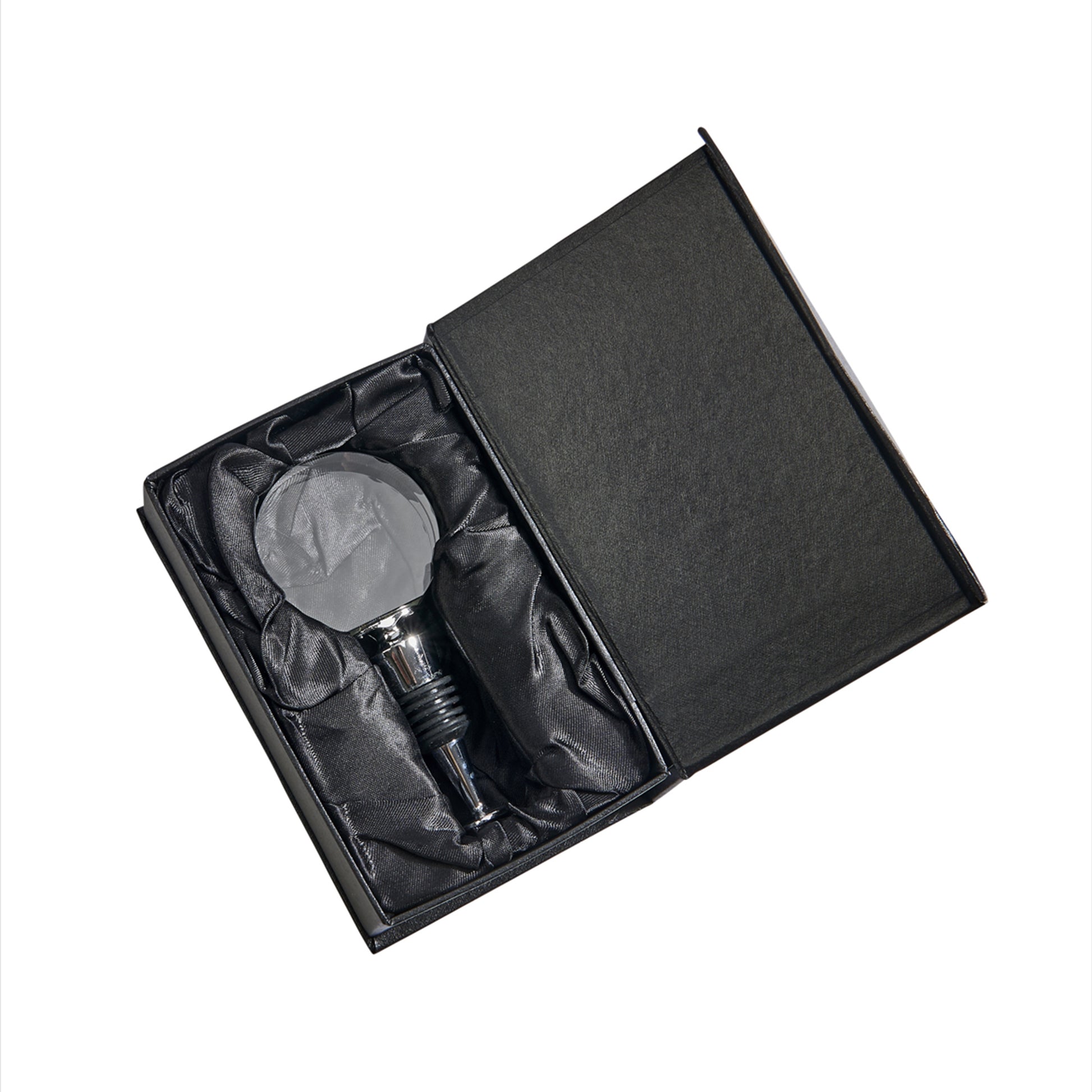 Our round clear optic crystal stopper makes the perfect gift for family, friend or co-worker. It's also a great corporate gift. Each 4.625" H stopper can be personalized (optional) with initials. The diameter of the optic crystal area is 2.125". The stopper sits atop a metal base with rubber gasket to keep your liquids fresh. Gift Boxed.